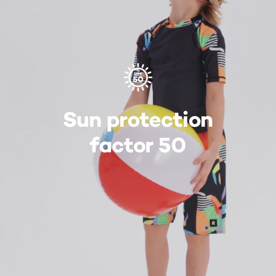 Badshorts med UV-skydd. De snabbtorkande shortsen är perfekta att ha på stranden.