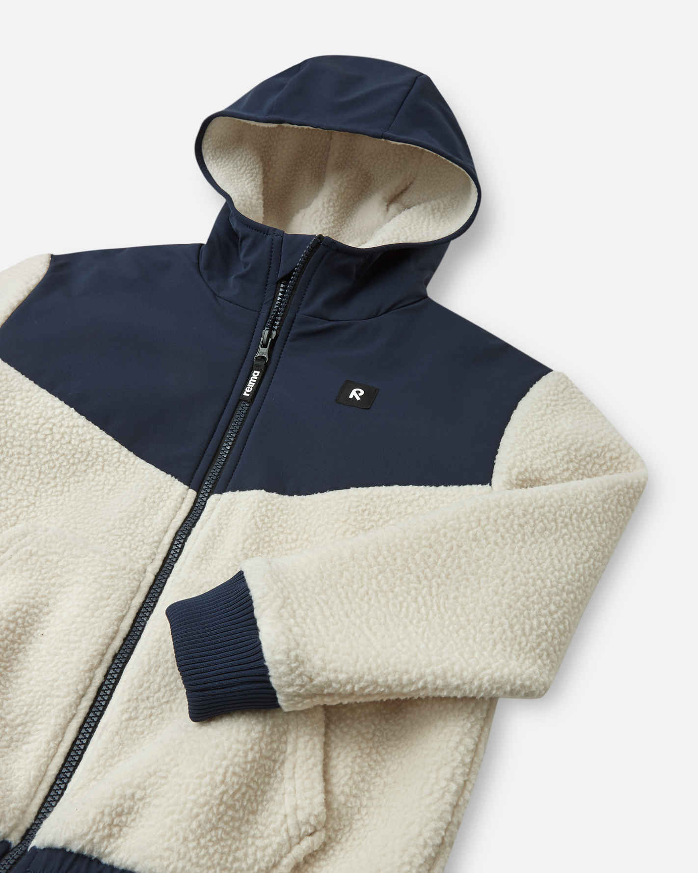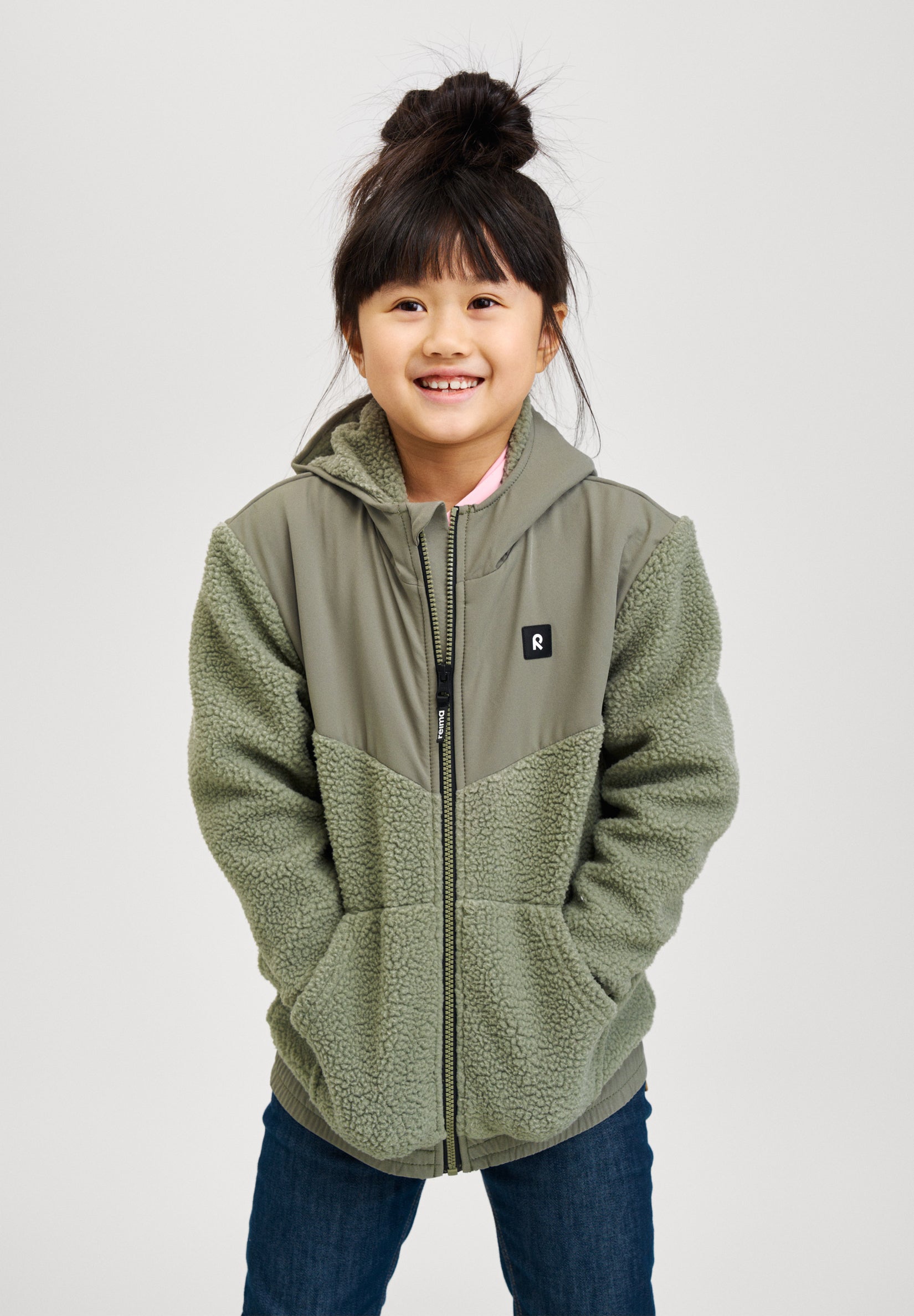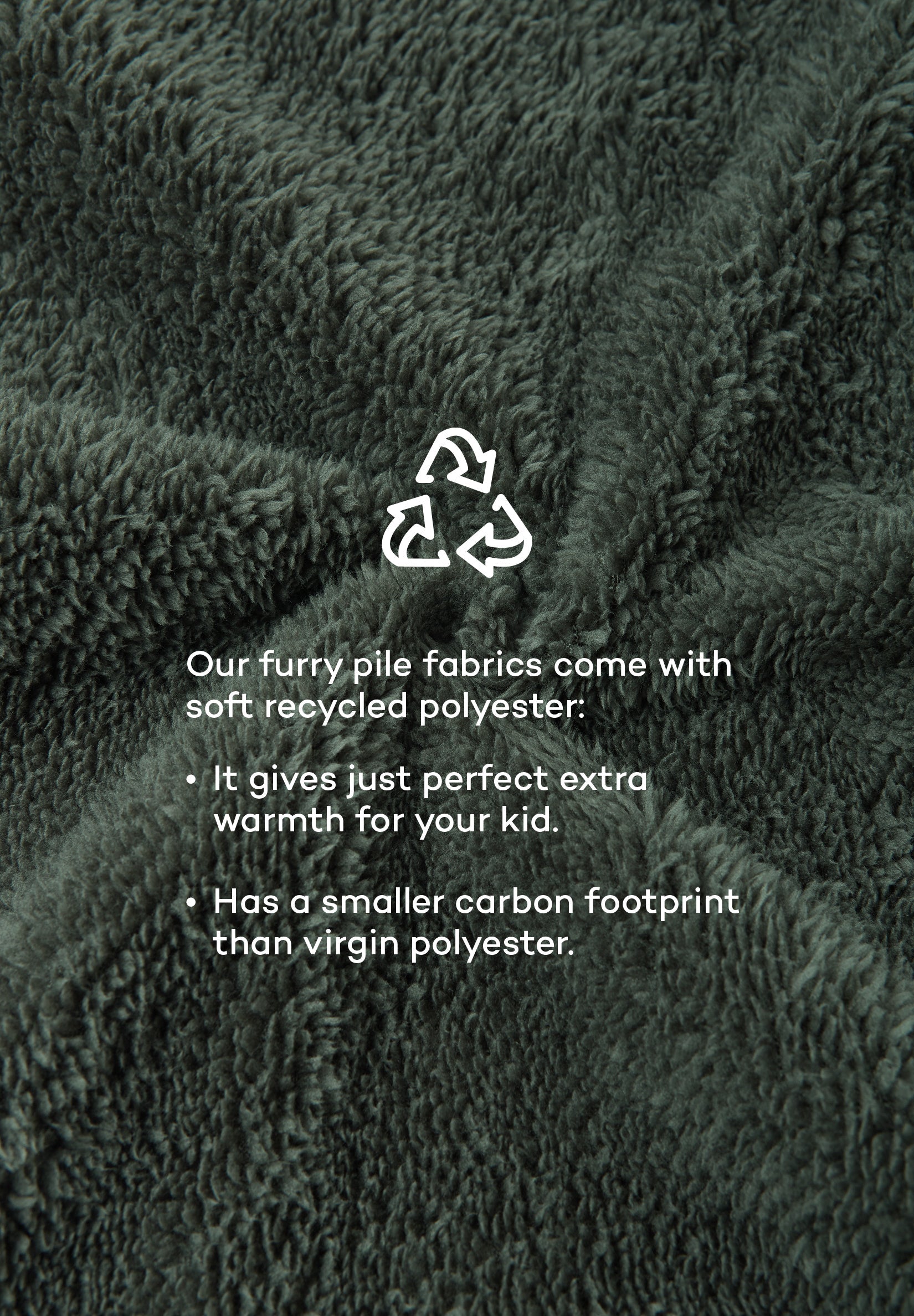 Pilefleecetröja för barn, med hellång dragkedja och värmande teddyfoder. Extra vattenavvisande tyg längst upp för bättre skydd. Tillverkad med återvunna material.