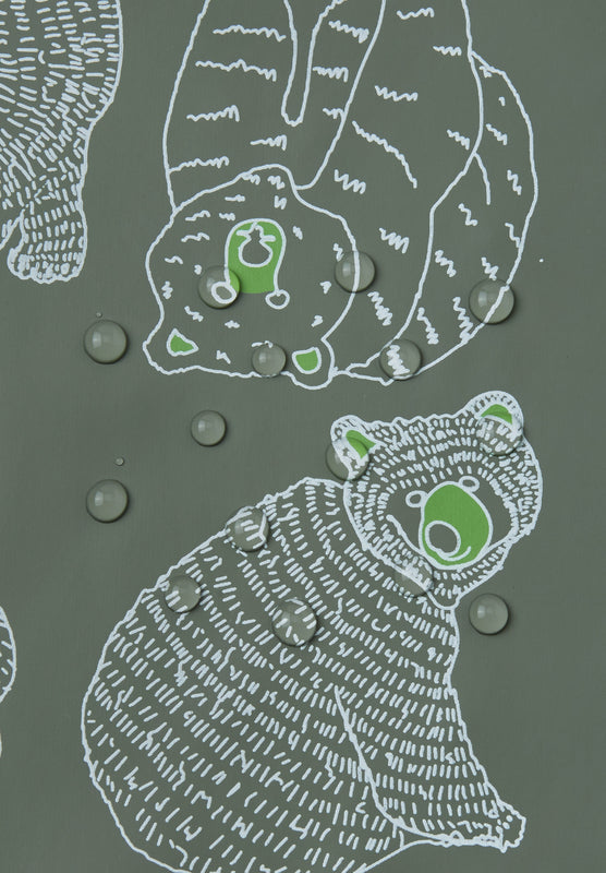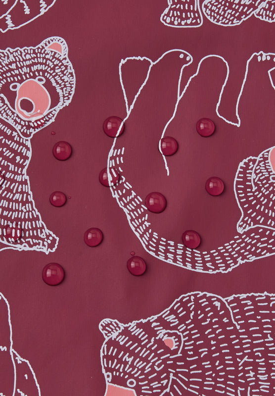 Regnjacka för barn tillverkad i bekvämt och elastiskt material. Tillverkad av återvunna fibrer.