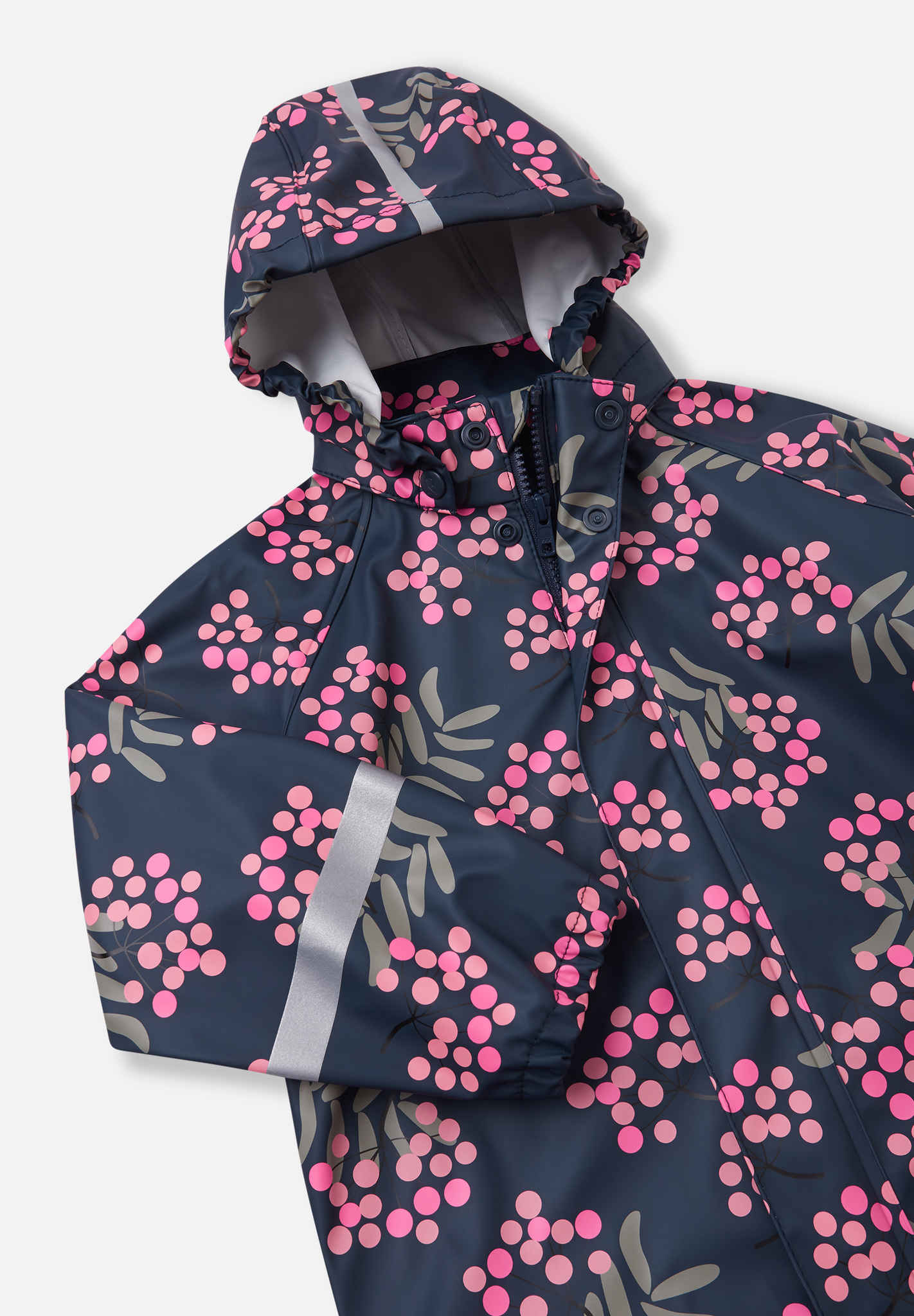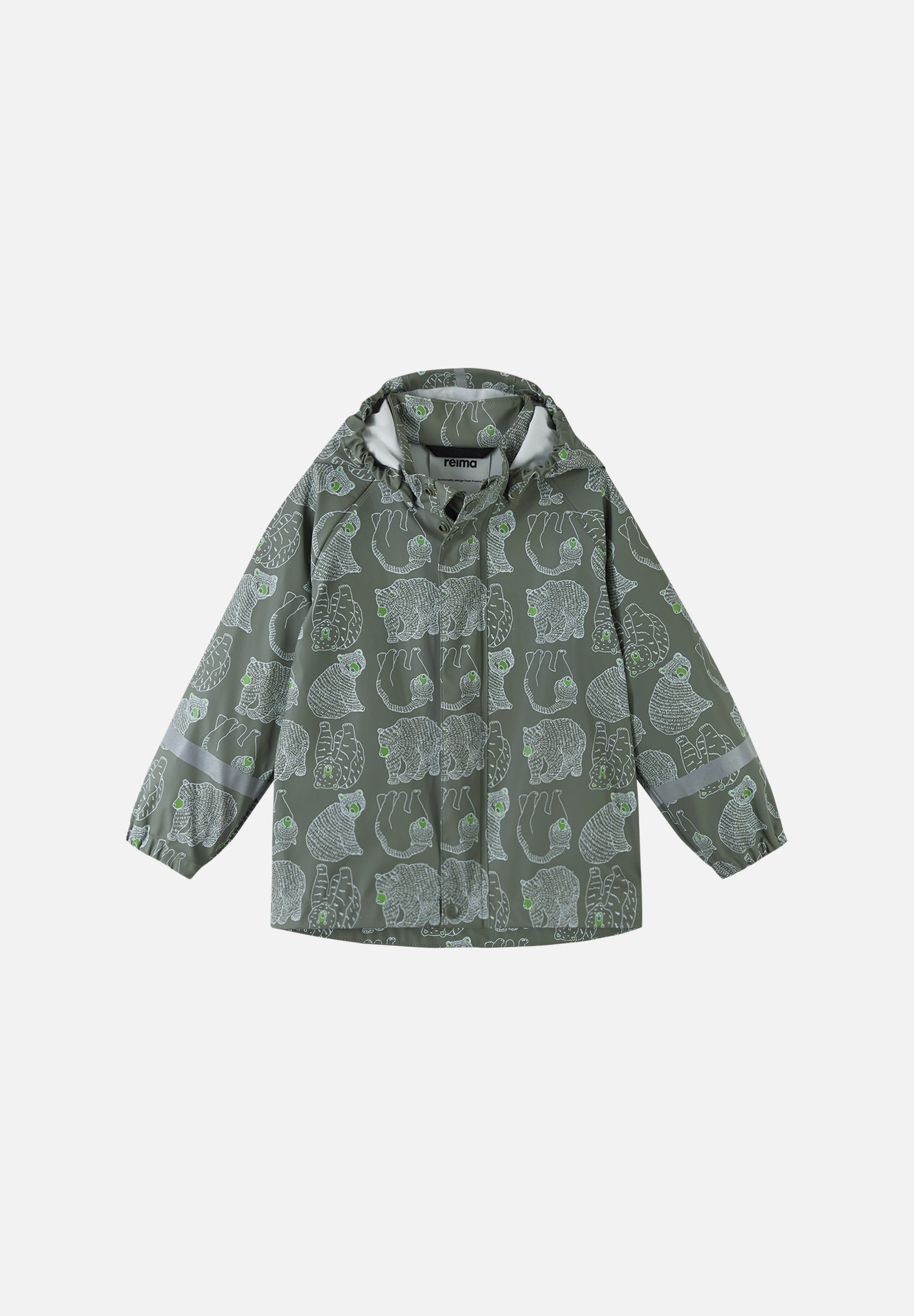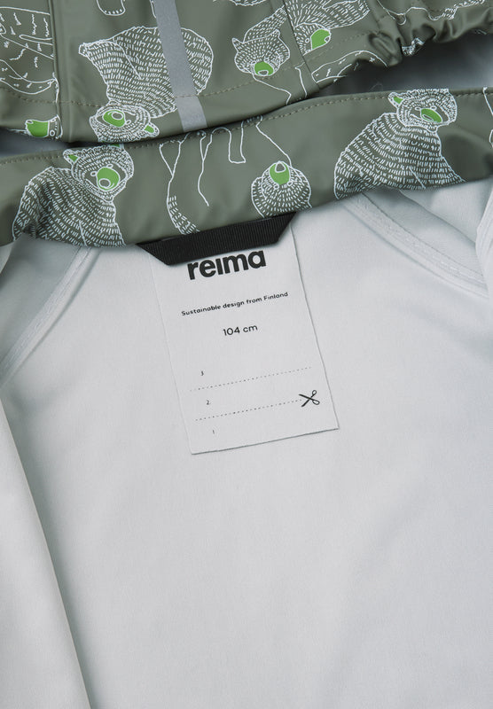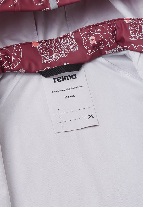 [--Read More--]Regnjacka för barn är tillverkad i behagligt, elastiskt och PVC-fritt material. Sömmarna är svetsade så att inget vatten slinker igenom. Reima-jackan blir inte stel ens i minusgrader, så den kan användas året runt om den kombineras med värmande lager under. Den avtagbara huvan skyddar mot kraftigt regn och är även säker under lek utomhus. Hellång dragkedja fram och massor av reflexdetaljer. Kombinera med Reima-regnbyxor så blir allt ännu roligare när det regnar!